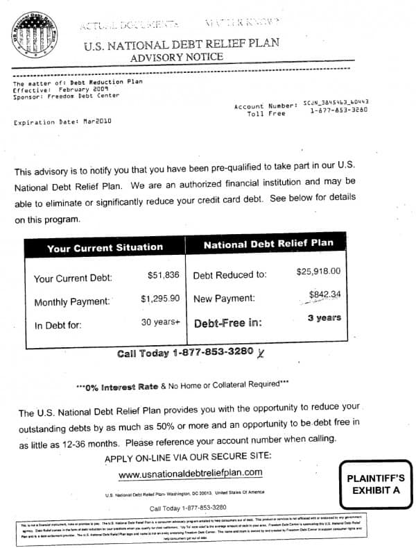 - Mailers for the U.S. National Debt Relief Plan led consumers to LHDR.