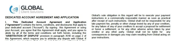The agreement is identical to Anchor Law Firm/ Global Client Solutions. Uses Strategic Financial Solutions, New York, NY, as their “call center”.