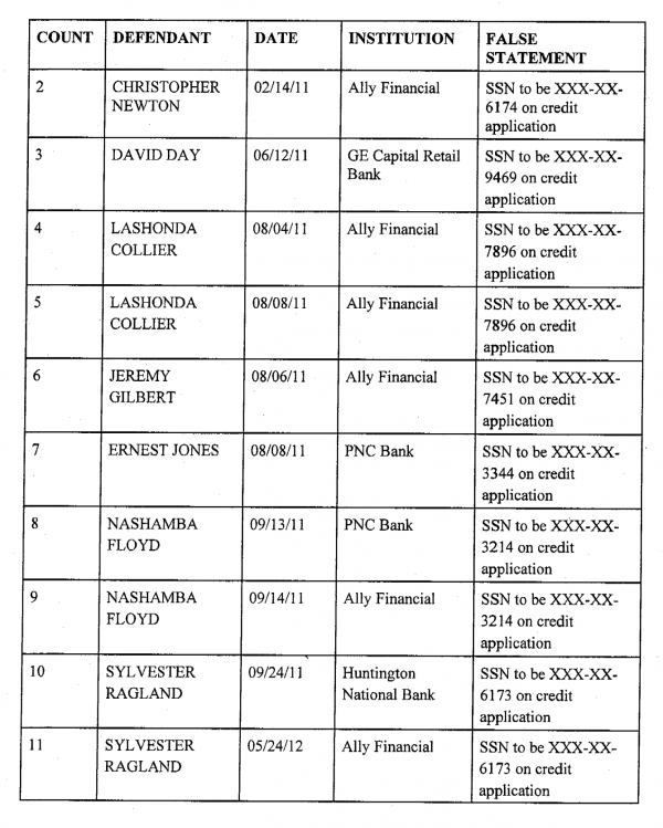 The indictment from the Grand Jury stated, “The object of the conspiracy was to allow individuals with poor credit histories to successfully purchase vehicles with misappropriated SSNs and fraudulently established credit histories.”