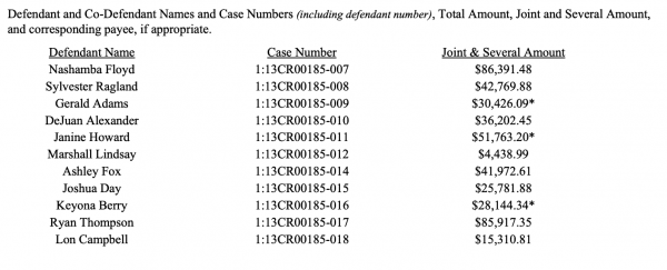 United States of America v. David Day, Kimberly Taylor, Christopher Newton, Lashonda Collier, Jeremy Gilbert, Ernest Jones, Nashamba Floyd, Sylvester Ragland, Gerald Adams, Dejuan Alexander, Janie Howard, Marshall Lindsay, Joe Snow, Ashley Fox, Joshua Day, Keyona Berry, Ryan Thompson, and Lon Campbell