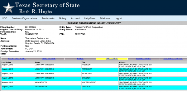 Public records say Jonathan Sriberg is the president and Akshat Sethi is the vice-president. – Source