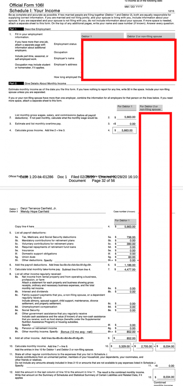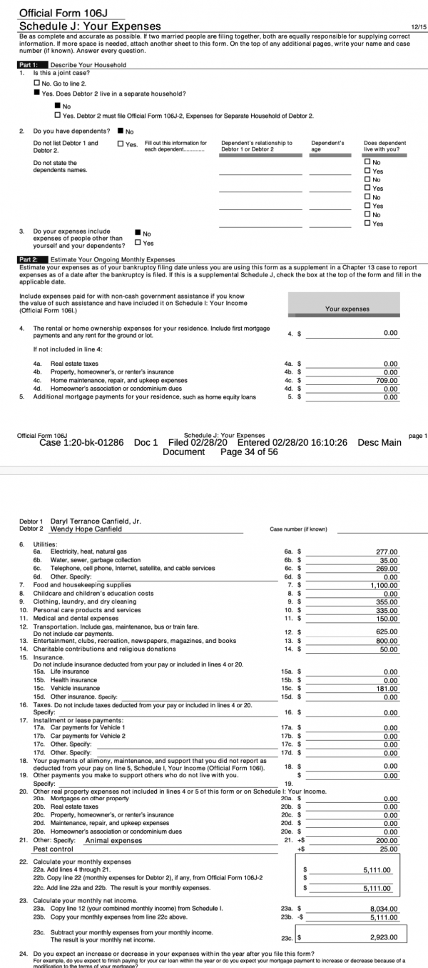 When you compare that to the income and expenses listed on the Chapter 13 bankruptcy filing of the consumer, they are not close.