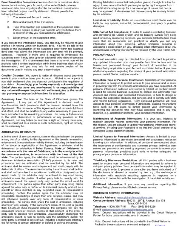 - In the arbitration clause it says that the rules of New York, New York will apply and arbitration will take place there even though the debt settlement company is located in Texas and the client is located in yet another state.