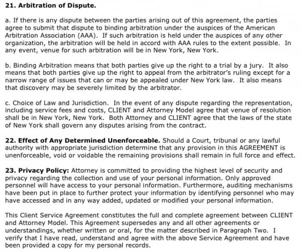 I was just handed their client service agreement so I thought I’d take a few minutes to review it and point out some issues consumers should be aware of before they sign the agreement.