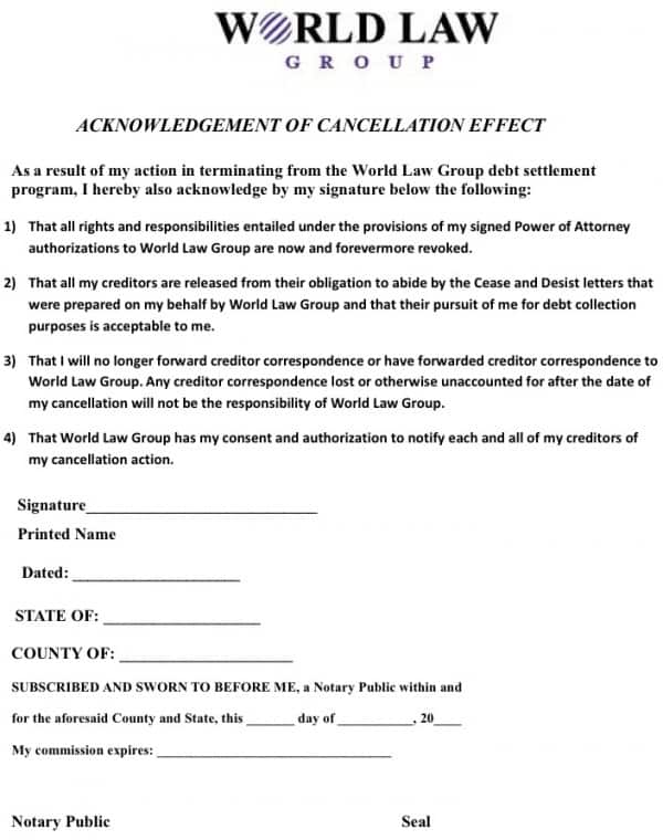- Attorney may kick client out of the program at any time by written notice but client must complete a notice of cancellation and acknowledgement of cancellation effect for in order to cancel.