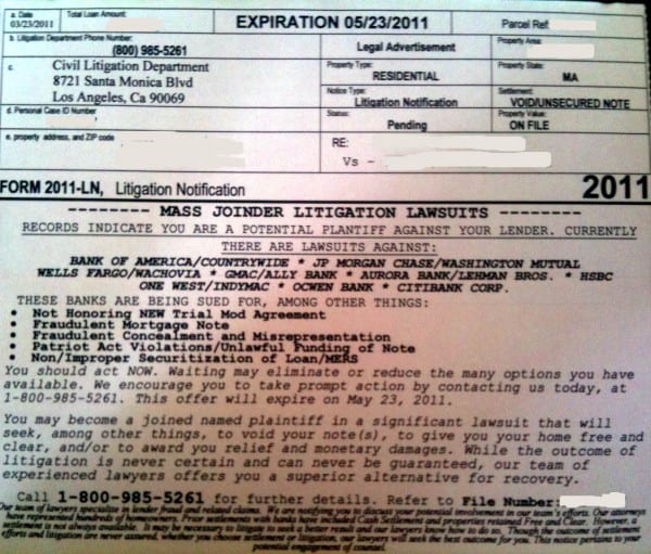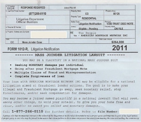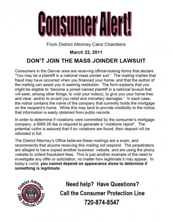 I now have so many people sending in copies of mass joinder marketing pieces that I’m creating this post to just add them to as they come in.