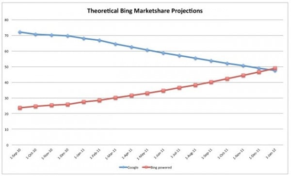 If current trends continue then in the not too distant future Bing and Google may be neck in neck for activity and shortly thereafter become a minority player.