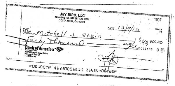 Stein then informed Yarchever that he had never received any retainer payment or agreement and had not worked on either case. Yarchever then discovered discovered the check had never been deposited for Stein but changed to Kramer. In May 2011 Jay Bird filed a check fraud claim with Bank of America and Bank of America approved the claim and reversed the charge, thereby crediting $40,000 back to the account of Jay Bird.