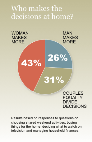 According to a 2008 Pew Research study, women naturally make more of the decisions in the home.