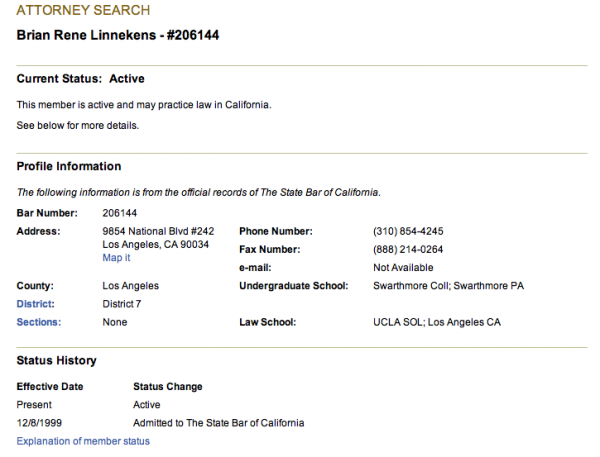 Interestingly the BBB is silent about the relationship between Legal Debt Pros and the law office of Brian Linnekens except for the matching address of 9854 National Blvd #242, Los Angeles, CA 90034.