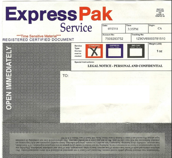 Precision Law Center in South Coast Metro, California has changed up their typical mailer they have been sending to woo consumers to part with their hard earned money to participate in a lawsuit again mortgage companies in hopes of getting all sorts of perceived promised benefits.