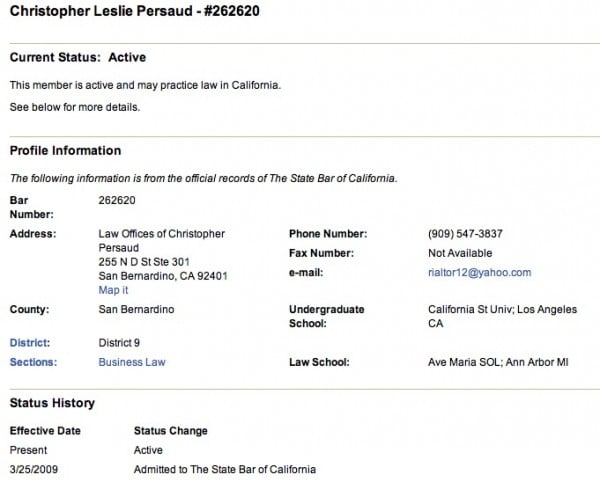Hell, Persaud doesn’t even list the fact he is with Precision Law Center with his Bar record, he says he is in private practice.