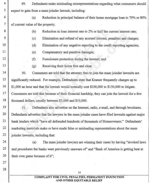 On the surface the UFAN movement looks a lot like that of Kramer & Kramer who had a number of different websites and marketers all over-representing the benefits of joining a mass joinder, mass litigation or tort litigation lawsuit against their mortgage companies. Just one issue with that approach. A couple of weeks ago the office of Kramer and another attorney selling this stuff were raided by California law enforcement.