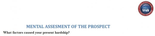 So keep in mind, this is a document that is sent to a consumer by a representative of UFAN Law Group and there is a page actually titled, “Mental Assessment of the Prospect.” The Prospect! Are you kidding me? And this document was carefully approved by UFAN lawyers?