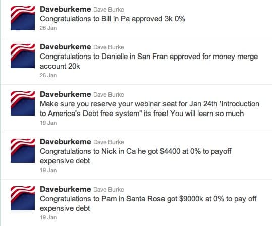 I am one of the people Dave ripped off and he is sending me emails as well. Got 2 today. Unbelievable… Going back to the people he has already ripped off. As far as I can tell he was ordered to stop being involved in debt counseling in any manner. What he appears to be doing is pulling people in with a debt elimination seminar then marketing some kind of health shake MLM so you can earn money and get out of debt. I am certain he is in violation of the injunction. He can’t promote a debt elimination business and the do a bait and switch into an MLM.