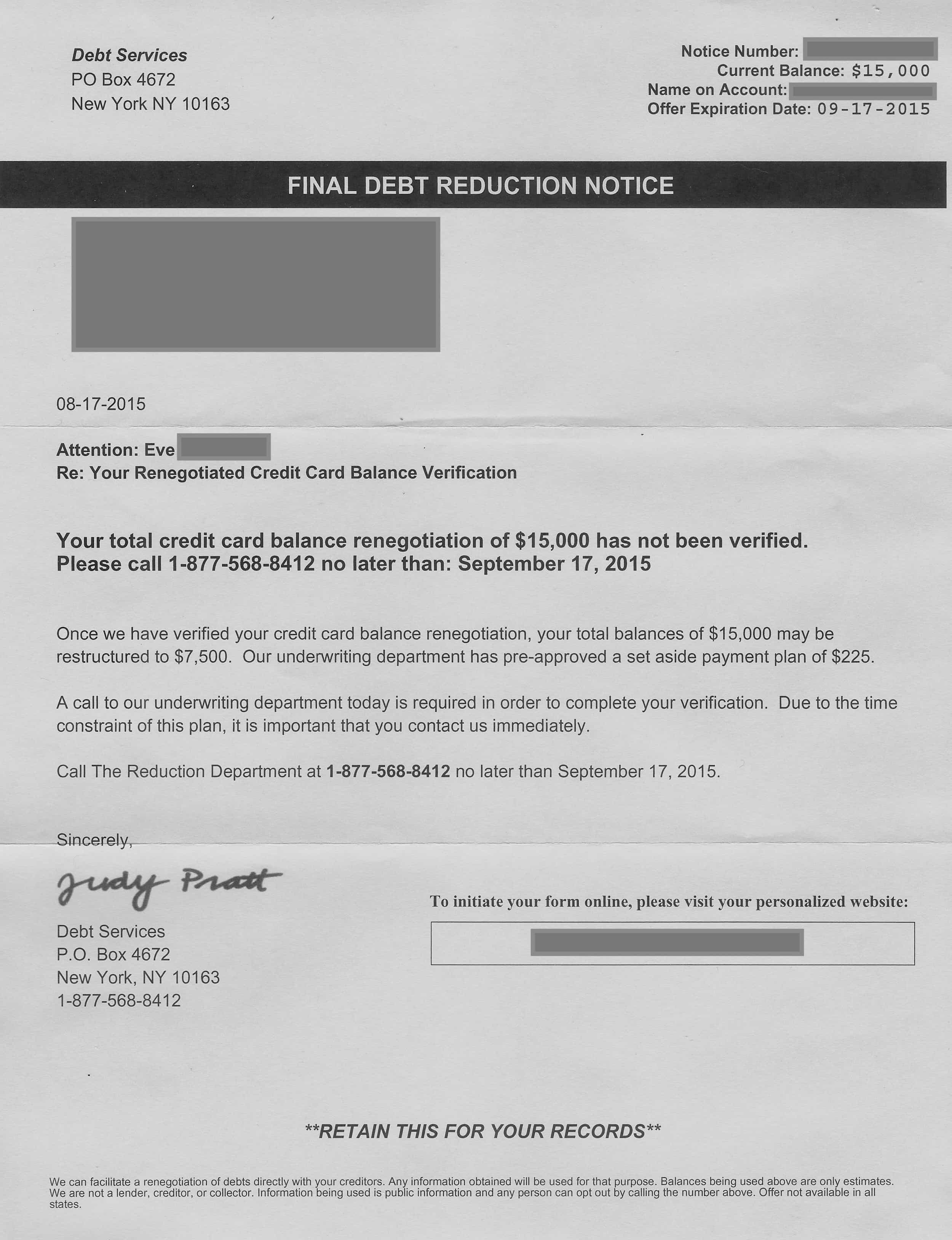 As part of my I Buy Junk Mail program, Eve sent in a number of recent debt relief mailers that landed in her mail box.